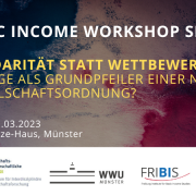 Das Centrum für Interdisziplinäre Wirtschaftsforschung (CIW) lädt mit dem Freiburg Institute for Basic Income Studies (FRIBIS) zu einem gemeinsamen Workshop ins Franz-Hitze-Haus Münster ein. Zum Thema „Solidarität statt Wettbewerb: Das Bedingungslose Grundeinkommen als Grundpfeiler einer neuen Gesellschaftsordnung?“ sollen von Montag, dem 20.03.2023, 14 Uhr bis Dienstag, dem 21.03.2023, 15.30 Uhr verschiedene Perspektiven auf gesellschaftliche Zukünfte geworfen werden. Argumente für und gegen Grundeinkommen im Format Rede-Gegenrede sollen polarisieren und zum Dialog anregen.