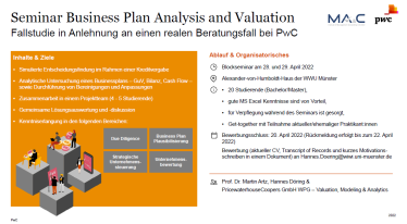 Am 05.07.2022 konnten wir Christian Schäfer, Bereichsleiter Konzernstrategie, -kommunikation & Vorstandsstab bei der Provinzial Versicherung, als Gastdozenten zum Thema „Strategie“ für die Studierenden der Veranstaltung Versicherungsmanagement gewinnen. Leider konnte der geplante Besuch bei dem Versicherer coronabedingt nicht stattfinden. Nichtsdestotrotz freuen wir uns, dass Herr Schäfer seine Vorlesung in der Universität halten konnte un hoffen, dass im nächsten Durchgang der anvisierte Besuch der Versicherung wieder stattfinden kann.