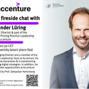 as part of his visit to Münster University and its School of Business & Economics, the Chair of Digital Transformation is excited to host a Fireside Chat for Master Students with Alexander Lüring, Managing Director at Accenture and member of the European Pricing Practice Leadership Team.