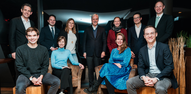 Prof. Dr. Andreas Dombret (Mitte) und die Preisträger:innen: Dr. Moritz Gutsch, Dr. Julia Hennes, Dr. Ricarda Schauerte, Dr. Jörn Debener (vorne, v.l.n.r.), Prof. Dr. Daniel Westmattelmann, Dr. Fabian Riegler, Dr. Roxanne Raabe, Dr. Kathrin Goldmann, Dr. Christian Domikowsky, Dr. Sven Nolte (hinten v.l.n.r.).