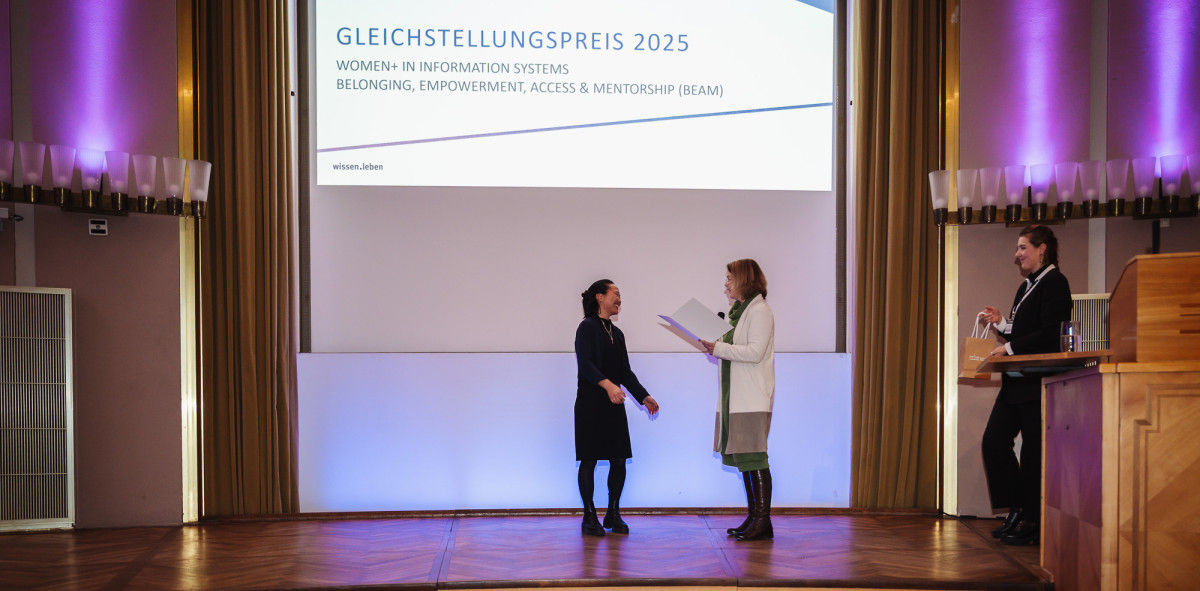 Das Projekt „BEAM“ (Belonging, Empowerment, Access & Mentorship) der Women+ in Information Systems Initiative wurde beim Neujahrsempfang der Universität Münster mit dem Gleichstellungspreis 2025 ausgezeichnet. Der Preis wird alle zwei Jahre vom Rektorat vergeben und würdigt Projekte, die sich in besonderer Weise für Chancengleichheit und Gleichstellung einsetzen.