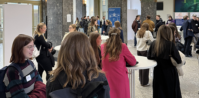 Austausch und Snacks bei der Expo im Foyer