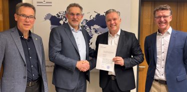 The School of Business and Economics has appointed Dr. Christian Böing as honorary professor, thereby recognising his impressive commitment to the department, his outstanding achievements in the field of market-oriented corporate management in professional practice and his contribution to teaching at the Marketing Center Münster. Prof. Dr. Thomas Langer, Dean of the School, presented him with the certificate and congratulated him together with Prof. Dr. Manfred Krafft and Prof. Dr. Thorsten Hennig-Thurau. Christian Böing studied and obtained his doctorate at the University of Münster and is currently CEO of the accompio Group.